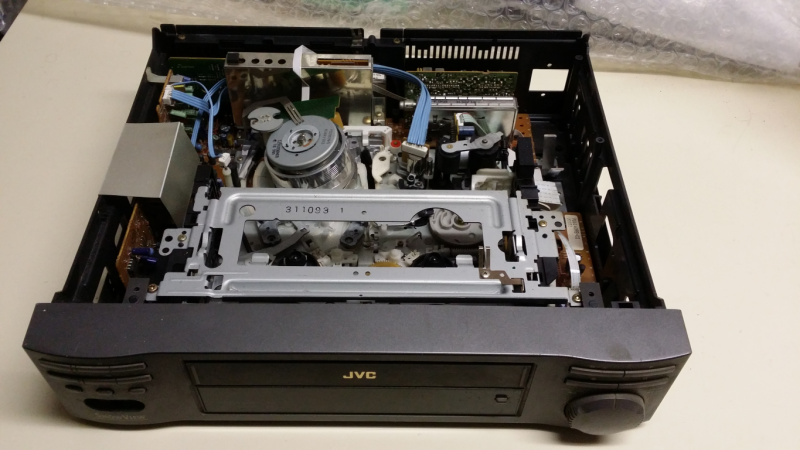 Partie mécanique du magnétoscope enlevée avec sa platine électronique du reste de l'ensemble DVDR